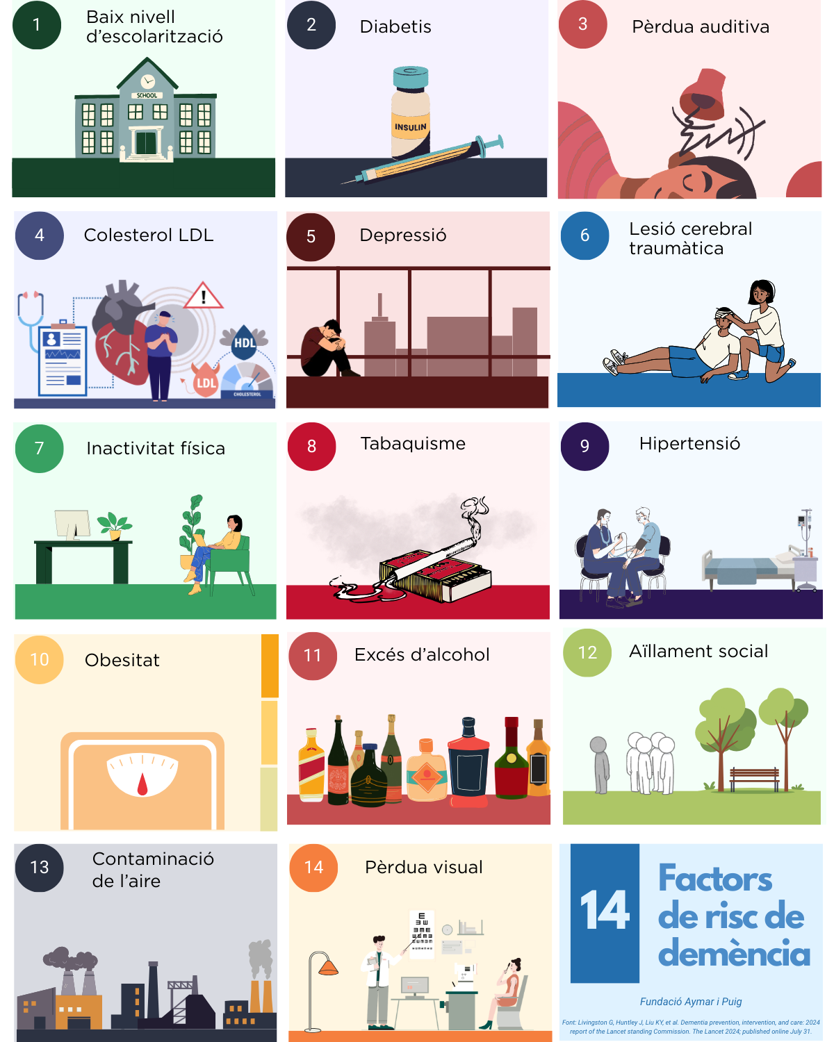 Font: Livingston G, Huntley J, Liu KY, et al. Dementia prevention, intervention, and care: 2024 report of the Lancet standing Commission. The Lancet 2024; published online July 31.