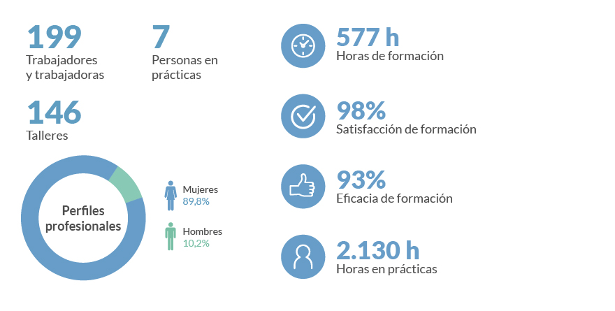El equipo humano de la fundación se caracteriza por el compromiso, la unión y la profesionalidad para prestar un servicio de calidad y eficiente. Es por eso, que se da especial relevancia al desarrollo y acompañamiento de los profesionales mediante el modelo AIP, una gestión integral del equipo y, especialmente de sus competencias socio-personales y emocionales, indispensables por la calidad en una relación de cuidado integral, personalizada y humana.